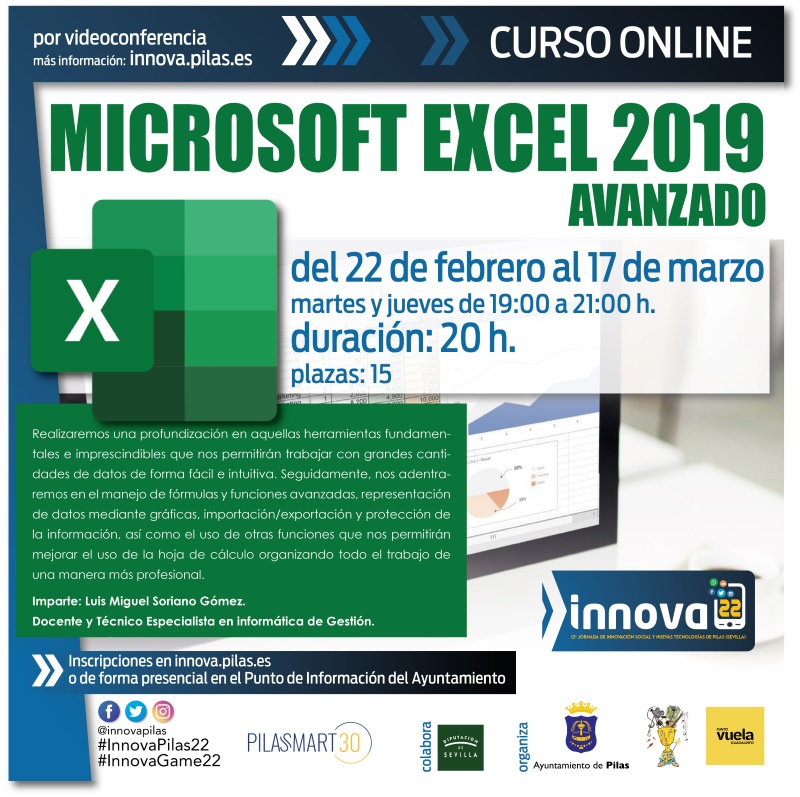Esta actividad sólo podrá ser seguida de forma ONLINE, por ello, no olvide inscribirse de forma correcta a través del formulario que sigue o hacerlo de forma presencial en el Punto de Información del Ayuntamiento de Pilas.
