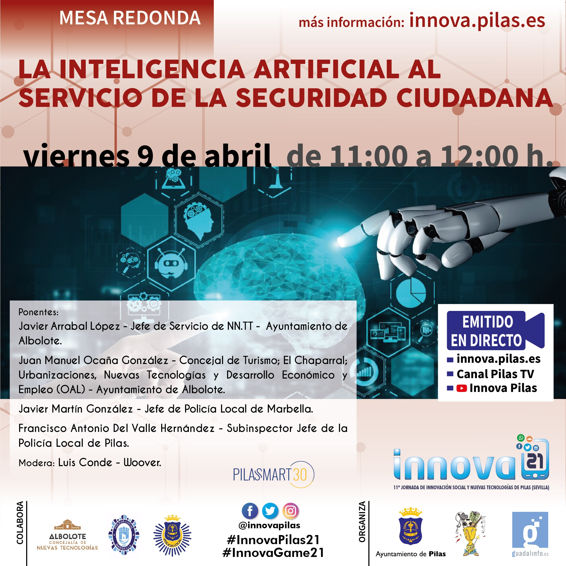 Durante la emisión podrás dejarnos tus comentarios y/o preguntas a través de Twitter con el Hashtag #InnovaPilas21 o vía whatsapp en el 602 29 38 03