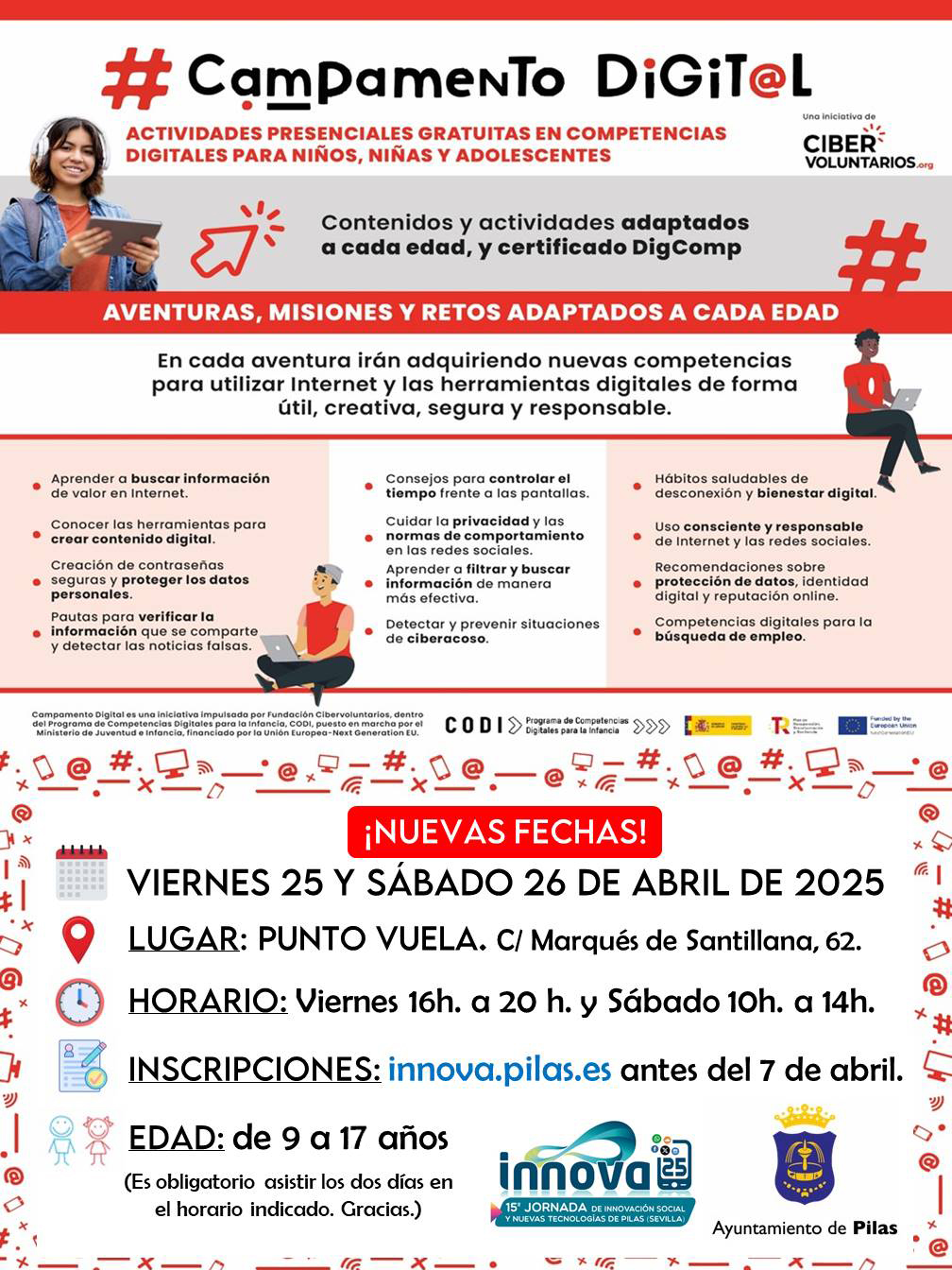 A navegar de manera segura por Internet, proteger su privacidad, crear su propio contenido digital o usar de forma responsable las redes sociales. Estas son algunas de las competencias digitales que podrán aprender gratuitamente los niños, niñas y adolescentes de entre 9 y 17 años gracias al programa Campamento Digital. El aprendizaje está planteado como un juego a través de una aventura interactiva, en la que deberán completar etapas y cumplir misiones para conseguir logros. Estas actividades presenciales extraescolares gratuitas incluyen un certificado DigComp al completarlas.