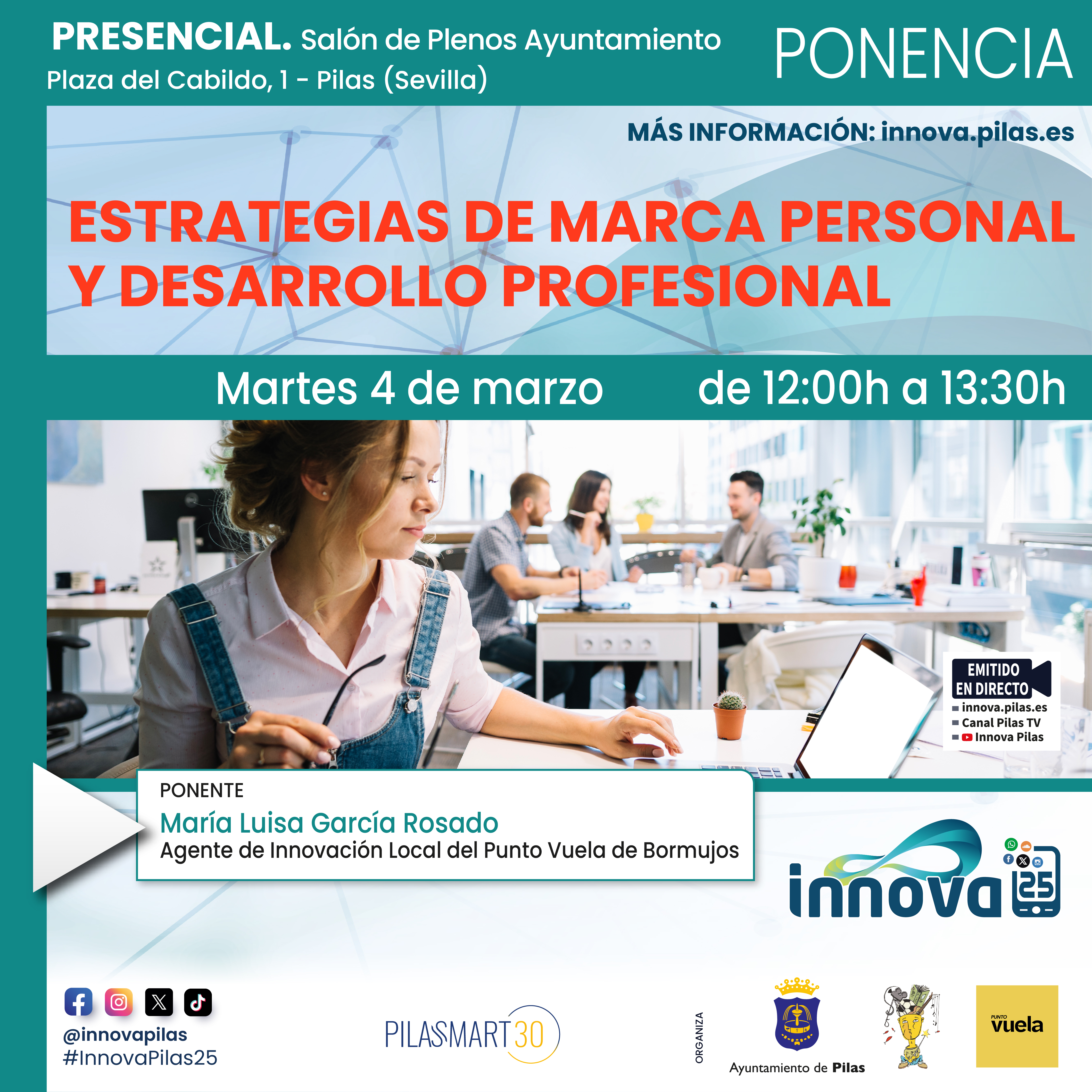 MODALIDAD: Presencial / Emitido en directo. Salón de Plenos, Ayuntamiento de Pilas (Sevilla).