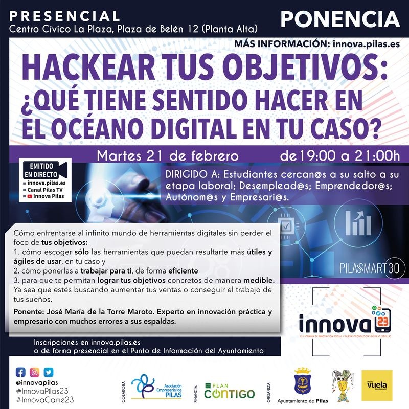 Durante la emisión podrás dejarnos tus comentarios y/o preguntas a través de Twitter con el Hashtag #InnovaPilas23, en el chat de la emisión en youtube o vía whatsapp en el 602 29 38 03