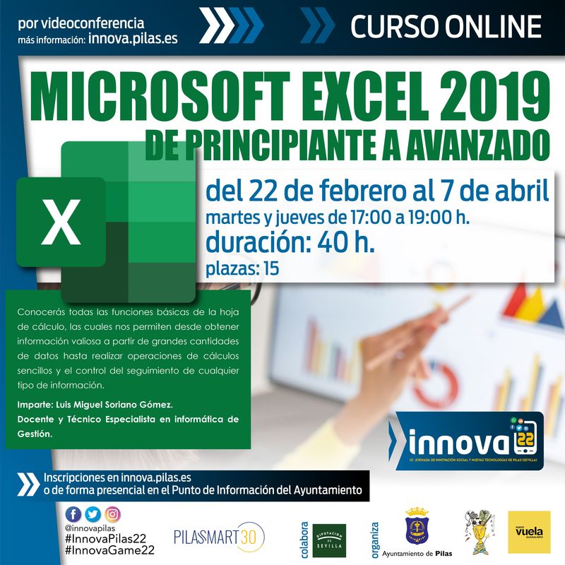 Microsoft Excel 2019. Completo, del 22 de febrero al 7 de abril.