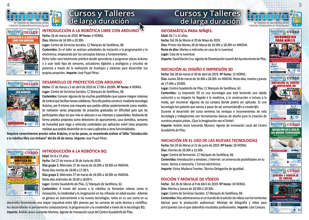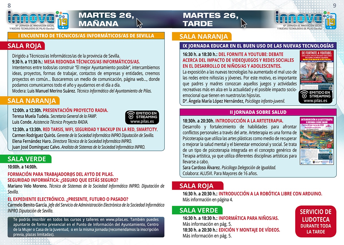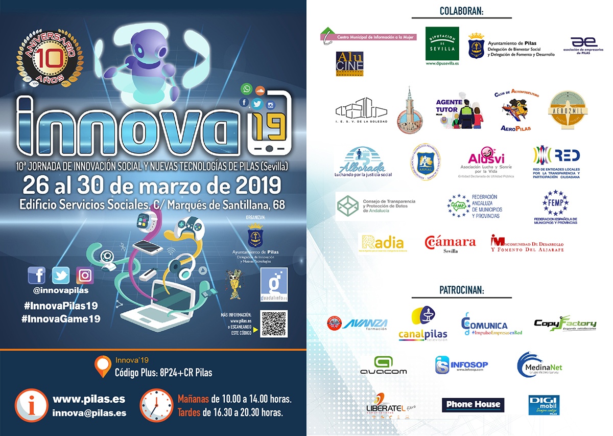 Tengo el placer de anunciaros una nueva edición de Innova, la Jornada de Innovación Social y Nuevas Tecnologías que cumple ya su décima edición. Un evento de gran importancia comarcal y provincial que con rigor, esfuerzo e ilusión prepara el equipo técnico de esta Delegación, ofreciendo un amplio programa de cursos y talleres para diferentes colectivos.