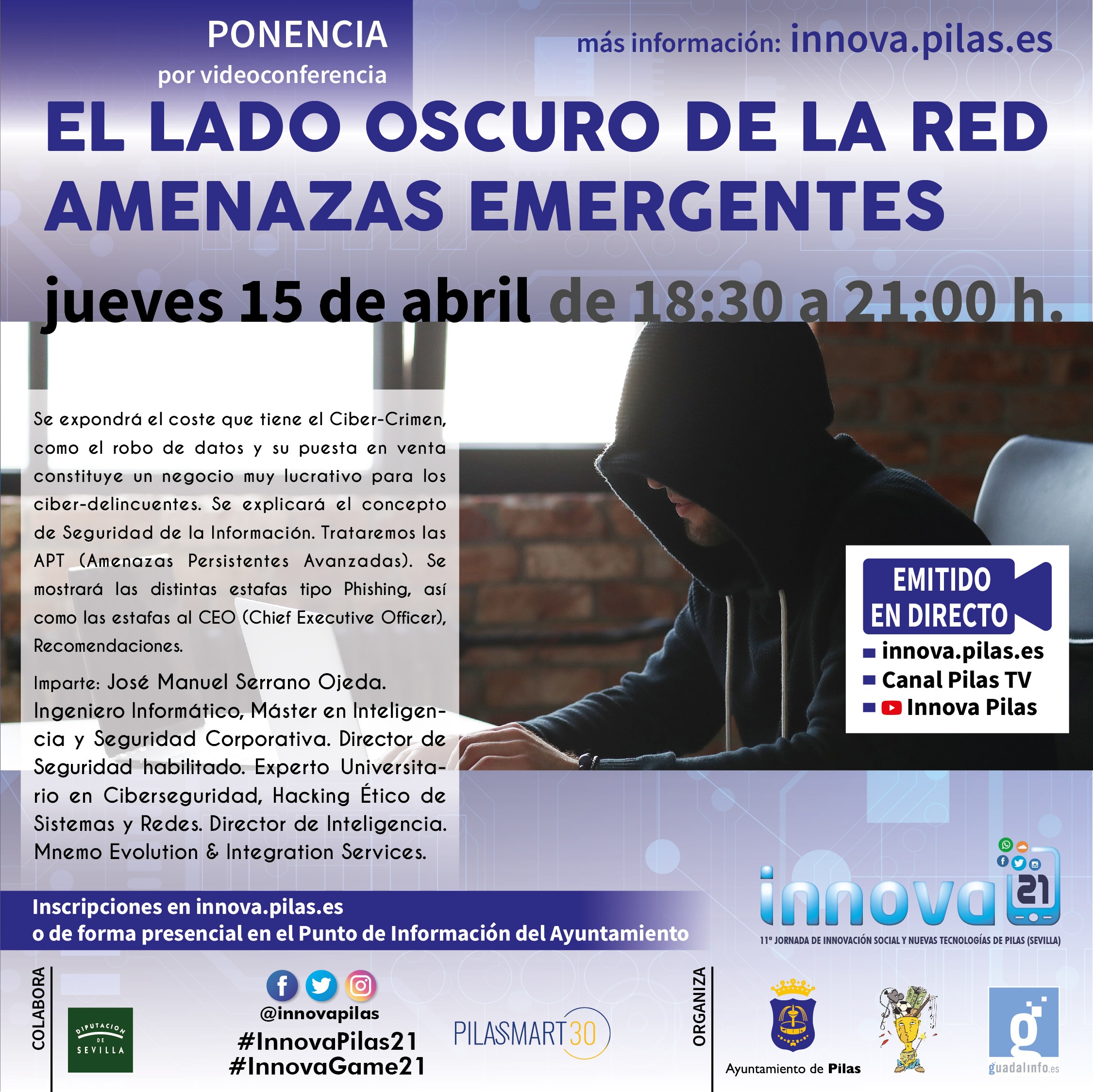 Ideal para poder interactuar con el ponente y resolver dudas. Para ello es necesario inscribirse de forma correcta a través del formulario que sigue o hacerlo de forma presencial en el Punto de Información del Ayuntamiento de Pilas.