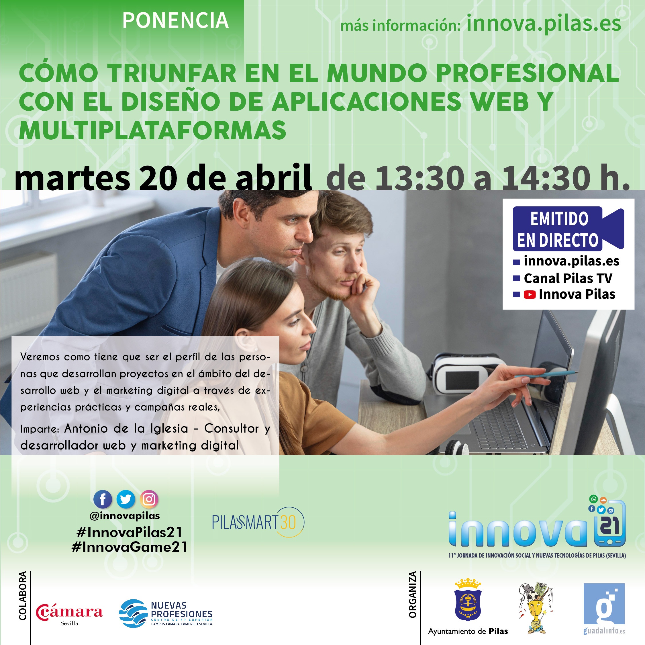 Durante la emisión podrás dejarnos tus comentarios y/o preguntas a través de Twitter con el Hashtag #InnovaPilas21 o vía whatsapp en el 602 29 38 03