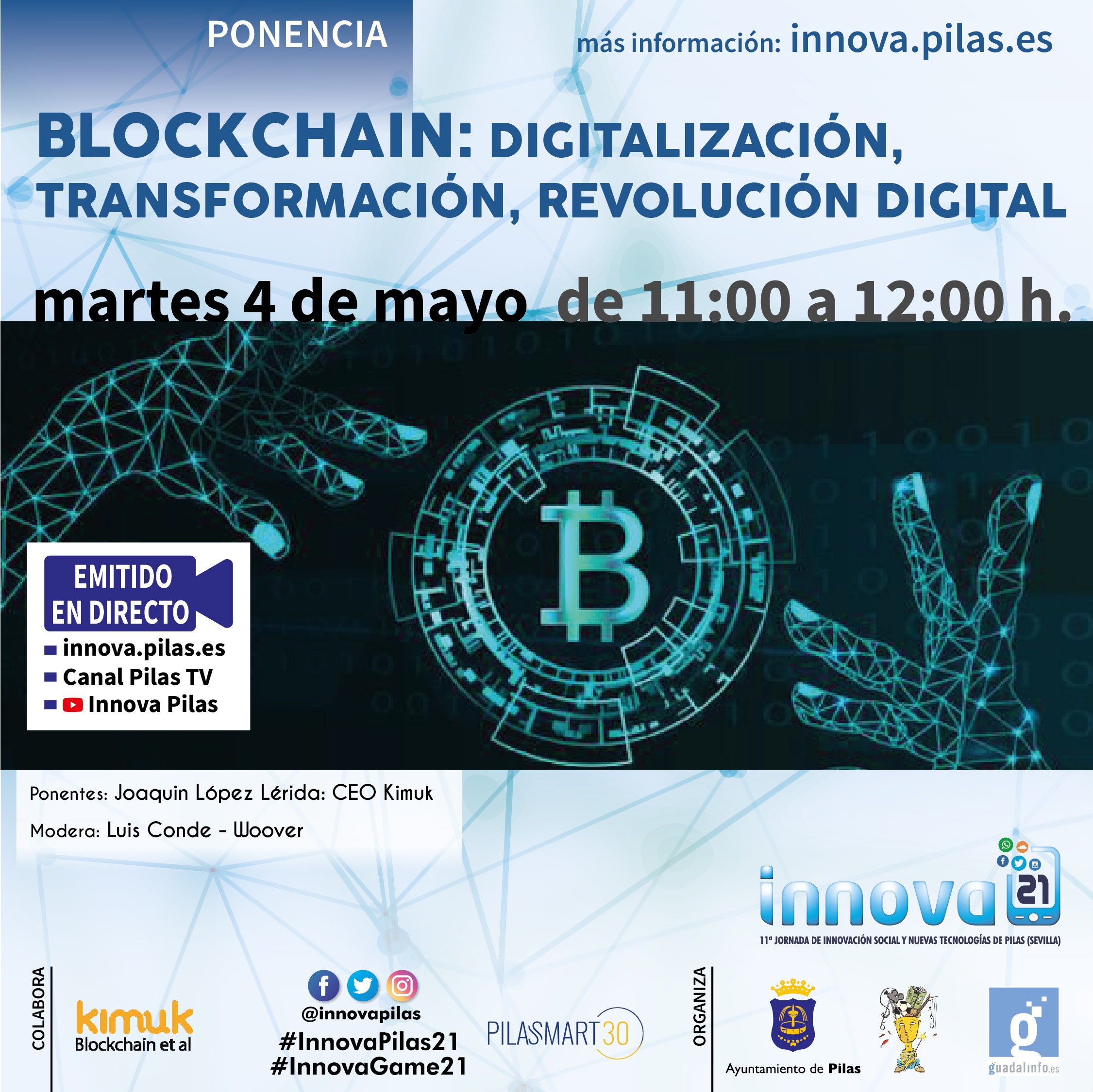 Durante la emisión podrás dejarnos tus comentarios y/o preguntas a través de Twitter con el Hashtag #InnovaPilas21 o vía whatsapp en el 602 29 38 03