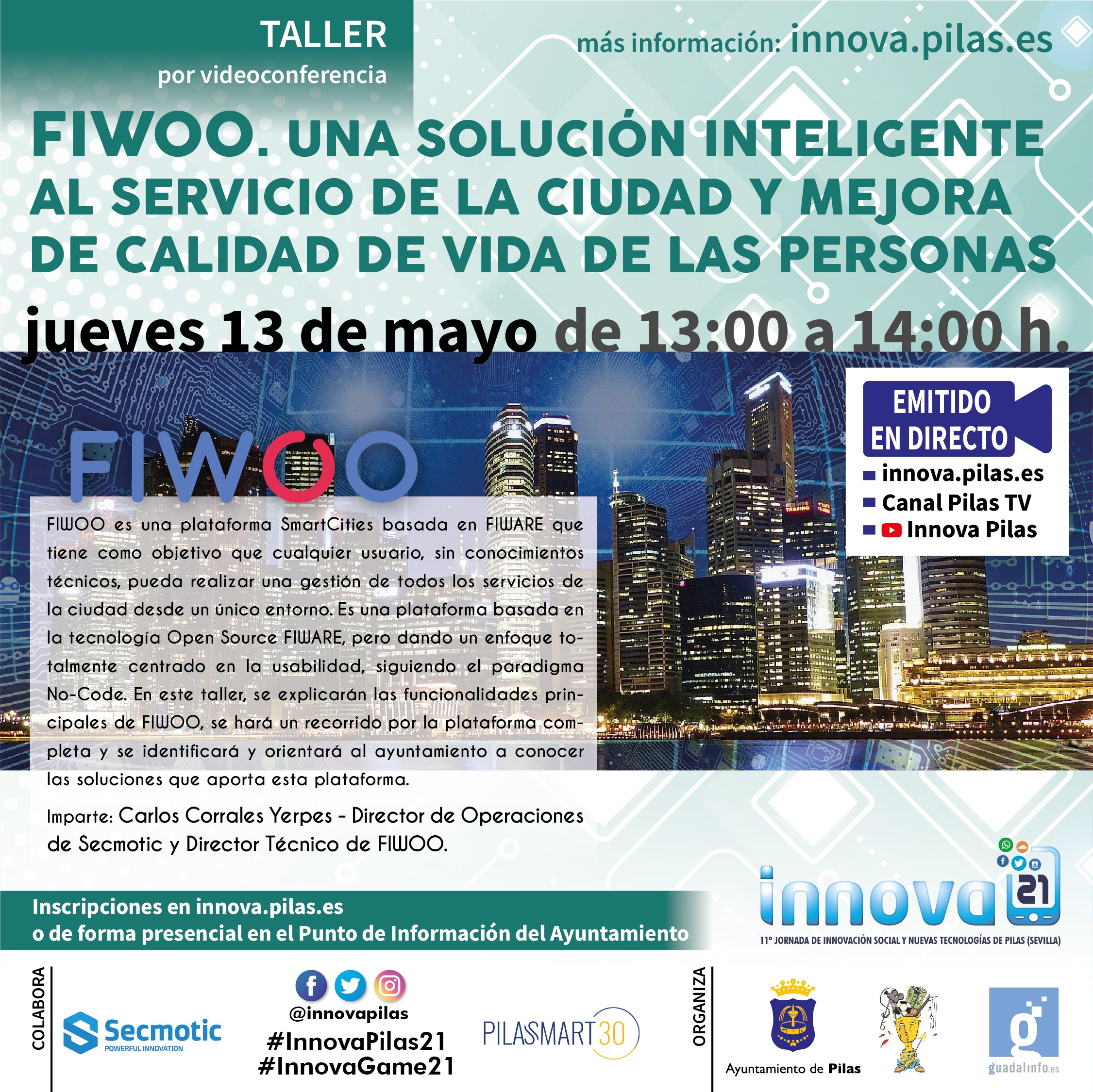 Durante la emisión podrás dejarnos tus comentarios y/o preguntas a través de Twitter con el Hashtag #InnovaPilas21 o vía whatsapp en el 602 29 38 03